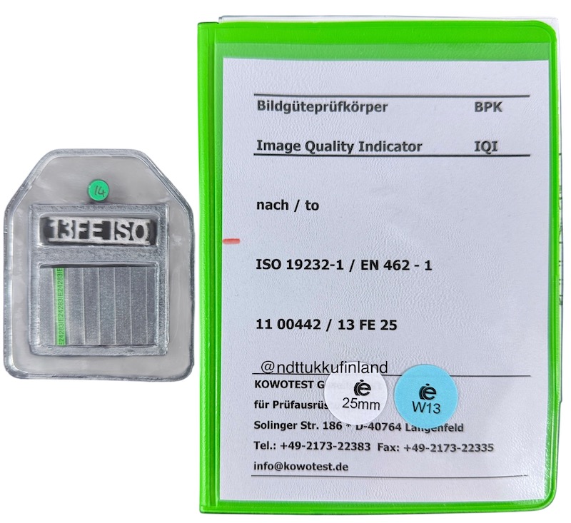 EN 462-1/ ISO 19232-1 standardit täyttävät FE13-50 indikaattori radiografiakuvauksiin.