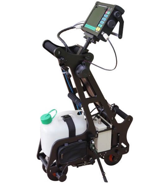 UDS2-77 ultrasonic single rail flaw detector is a handpush cart intended for the inspection of one rail line.